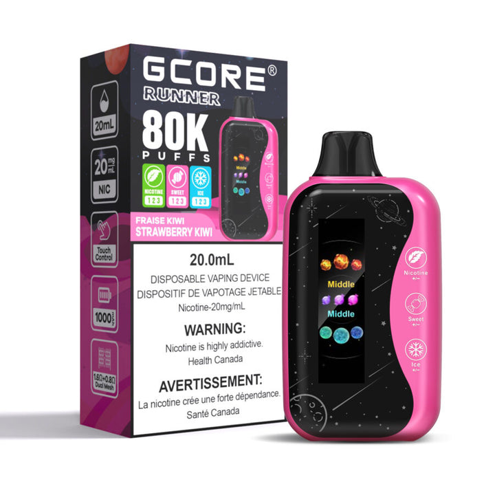 Buy Gcore Runner 80k Strawberry kiwi and experience the vibrant burst of mixed berries with a refreshing chill. Sweet, tangy, and sisfying clouds in every puff. Shop now – the Best Vape Store in Canada.