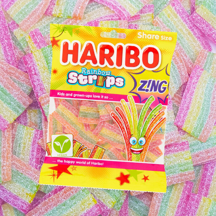Buy Haribo Rainbow Strips 130g from the Best Snacks Shop in Canada – ! Colourful, tangy rainbow belts th bring fun and flavour together.