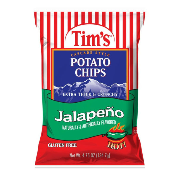 Buy Tim's Poto Chips Jalapeno 134.7g , your Best Snacks Shop in Canada. Thick-cut chips with a fiery jalapeño kick and signure kettle-cooked crunch.