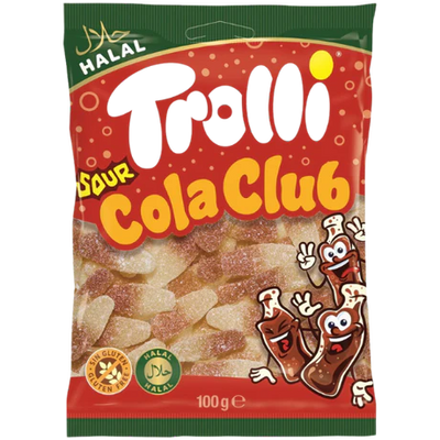 Pop open a bag of fizzy fun with Trolli Sour Cola Club (100g). Tangy, chewy cola-flavoured gummies with a sour sugar dusting — the ultime tre for cola candy fans. Pick them up today , the Best Snacks Shop in Canada for unique candy finds.